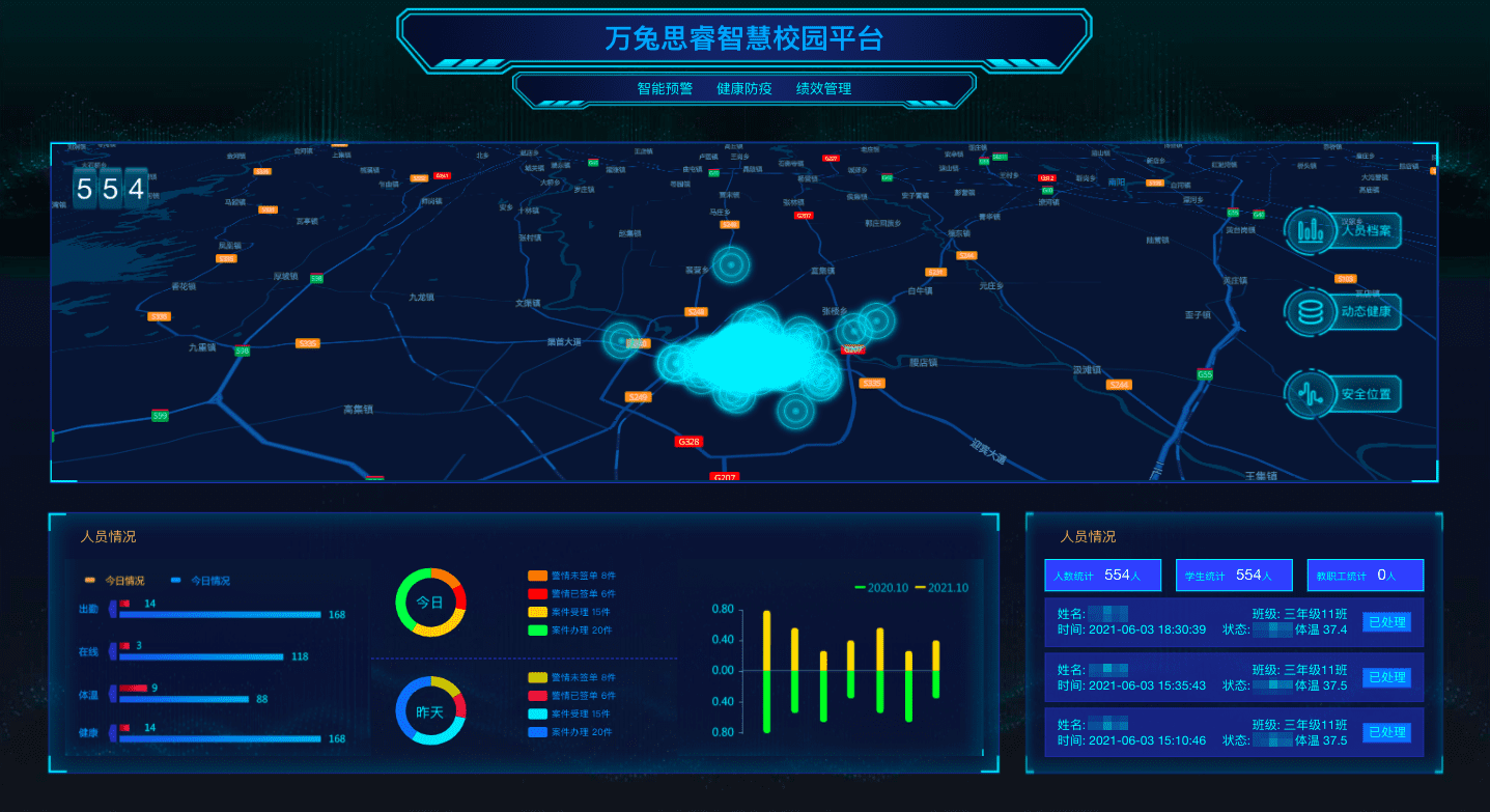У԰¿µ½¡ÖÎÀíÆ½Ì¨Æ¾Ö¤Ð£Ô°ÖÇÄÜÖÕ¶Ë¡¢´«¸ÐÆ÷Êý¾Ý¶¨ÖÆ»¯Õ¹Ê¾¸÷¹¦Ð§Ä£¿éµÄʵʱÔËÐÐÊý¾Ý£¬¿ÉÊÓ»¯¼à²âѧÉúÇå¾²¡¢ÉúÃüÌåÕ÷¡¢Ô˶¯¿µ½¡¡¢·ÀÒß²âΣ¬×Ô¶¯ÌìÉúѧÉú¿¼ÇÚ¡¢ÌåΡ¢ÐÄÂÊ¡¢¿¨Â·ÀïµÈ¿µ½¡±¨¸æ¡£ÒÔ¡°ÊÂǰԤ·À¡¢ÊÂÖпØÖÆ¡¢Êºó´¦Öóͷ£¡±µÄÇå¾²±Õ»·ÖÎÀíΪÉè¼ÆÀíÄÈÃÖÎÀíÕßʵʱ¡¢ÇáËÉÕÆÎÕѧÉúÇéÐΡ£