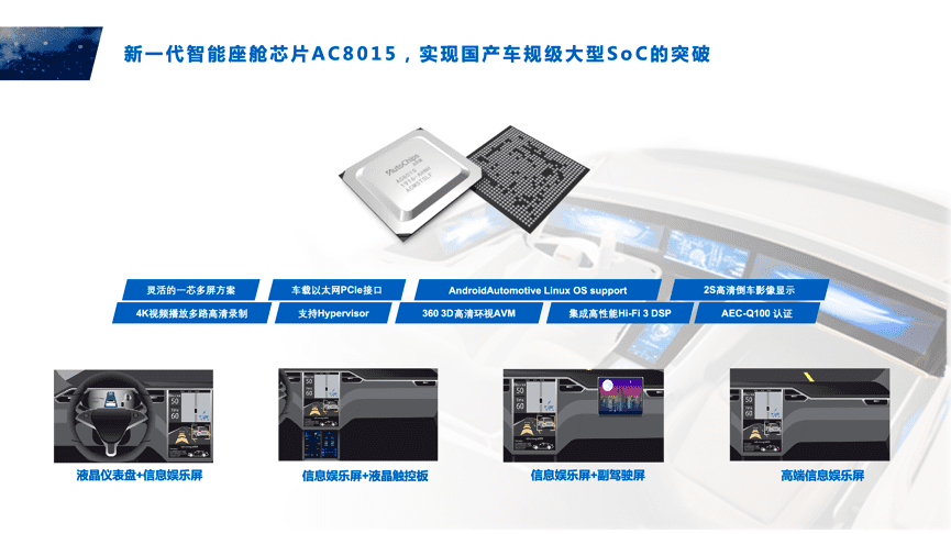 2018Äêµ×£¬¹«Ë¾Á¿²úÖйúÊ׿î×ÔÖ÷Ñз¢µÄͨ¹ýAEC-Q100 Grade 1, ÊÂÇéζÈ-40¡æ~125¡æµÄ³µ¹æ¼¶MCU³µÉí¿ØÖÆÐ¾Æ¬£»2019Äê11Ô£¬´ú±íÖйú±¾ÍÁ×î¸ßÊÖÒÕˮƽµÄÊ׿î̥ѹ¼à²âÈ«¹¦Ð§µ¥Ð¾Æ¬½â¾ö¼Æ»®ÕýʽÁ¿²ú£»2020Ä꣬¾Óɽü4Äêʱ¼äµÄÑз¢£¬ÐÂÒ»´ú³µ¹æ¼¶¸ßÐÔÄÜÖÇÄÜ×ù²ÕоƬ¡ª¡ªAC8015ÀÖ³ÉÁ÷Ƭ£¬»ñ¶à¼ÒϵͳÉÌÐÂÆ½Ì¨¶¨µã£¬ÊµÏÖÁ˹ú²ú³µ¹æ¼¶´óÐÍSoCµÄÍ»ÆÆ¡£