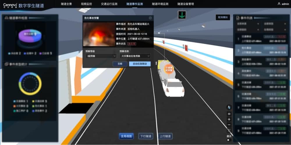 当隧道爆发应急事务,平台将自动匹配预先设置的应急预案,经由人工对事务类型、级别审核确认后,启动应急联动,实现设施装备“一键”联动控制,提升应急事务处置惩罚效率及通行清静。同时,平台可纪录事务处置惩罚流程希望,模拟泛起装备联动状态,实现应急联动全流程可视化羁系。