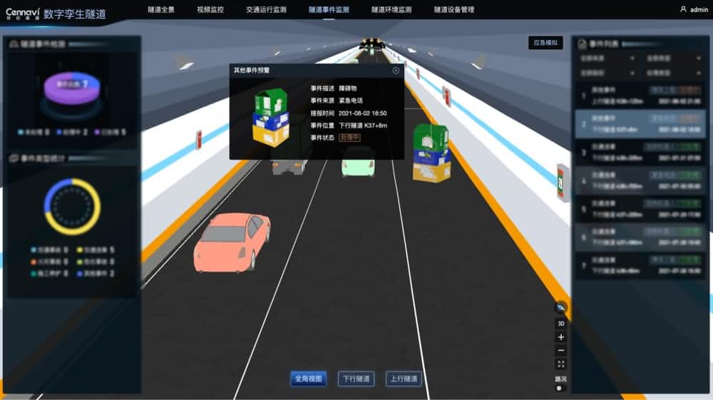 通过对接隧道视频系统、智能感知装备等,实时监测隧道内的交通、车辆、情形状态,精准识别隧道交通事故、交通违章、火灾、隧道病害等事务,及温湿度、风速、照明、烟雾等异常指标,并实时宣布预警。