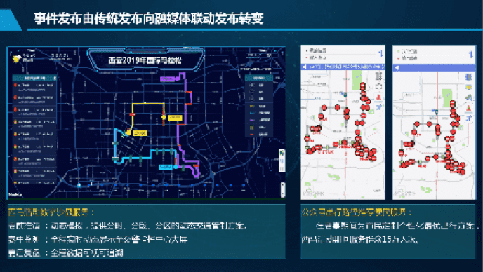 双方所打造的都会大脑指挥中心可视一体化指挥大屏,实现了对西安市交通全要素概览,包括都会交通康健状态、蹊径通行状态、种种交通事务、全市路网漫衍、重点蹊径区域等信息实时综合泛起。 同时随着都会常住生齿和无邪车保有量的一直攀升,蹊径交通缓堵保畅、交通事务快速处置惩罚、交通违法精准攻击、交通清静理念宣传等事人情临越发严肃的行驶,面临新形势下的需求,世纪高通自主立异为西安交警部分打造了“可视化指挥调理一张图”,实现交警指挥实战流程的七个转变。