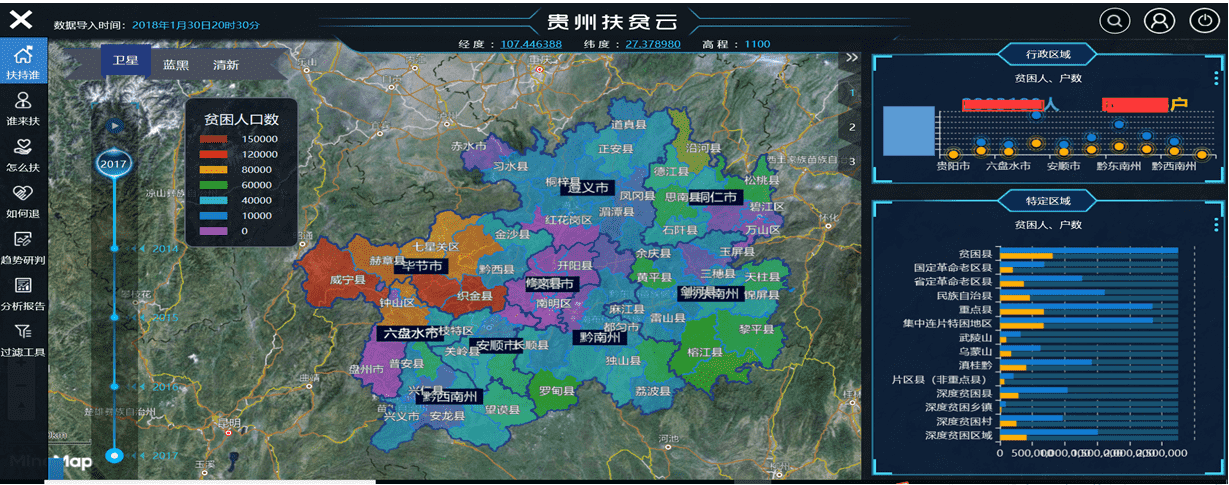2017年,人生就是博正式宣布MineData位置大数据平台,并于随后为交警、交通、公安、物流、包管、气象、运营商、都会妄想等多个政企偏向提供了一系列解决计划,2017年底,MineData联手贵州省扶贫办,升级刷新了贵州全省“扶贫云”平台,大数据平台有用的将贫困户、扶贫干部、扶贫步伐、脱贫妄想以及相关行业数据的时空信息举行融合及整理,并通过定制化的剖析和运算,以数字化的形式直观地实现精准扶贫的“挂图作战” 。立异性实践了互联网+科学精准扶贫新模式,以帮助谁、谁来扶、怎么扶、怎样退为思绪对贫困生齿、项目资金等举行剖析,扶贫干部位置漫衍举行地图可视化显示,实现大数据精准扶贫 。