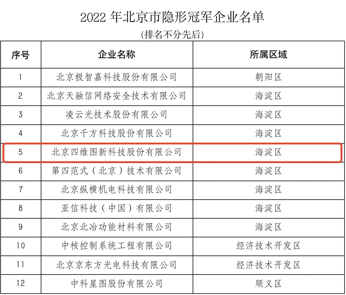 近期,北京市经济和信息化局会同市工商联组织开展了“2022年北京市隐形冠军企业”的征集和认定事情,人生就是博通过严酷评审与选拔,入选榜单 。